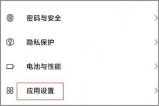 2、进入设置列表菜单,点击应用设置进入。