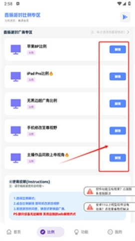 5、在比例页面,轻松解锁不同的视角比例,修改游戏视觉效果。