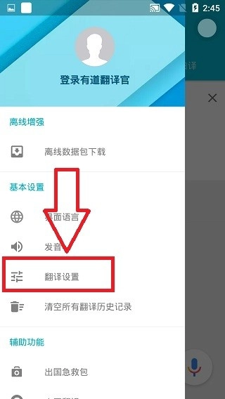 1、打开登录有道翻译官最新版,点击右上角图标。