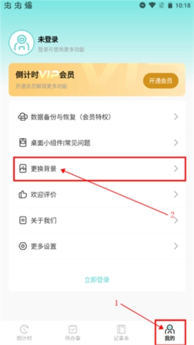 打开倒计时软件,在界面中找到并点击“我的”页面,随后在该页面里点击“更换背景”选项。