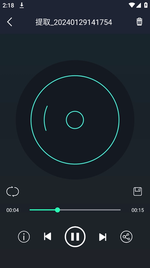 5.提取完成后就可以展示纯音频版本,如果满意点击下方的保存按钮保存到本地