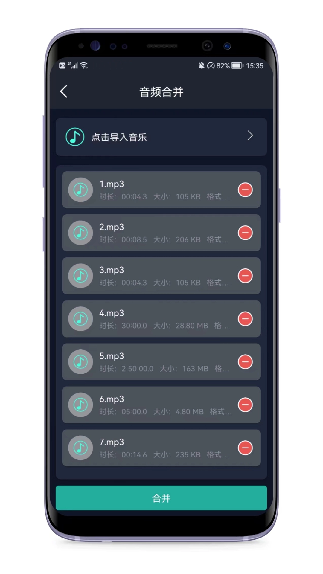 3.支持一键轻松合并多首音乐歌曲,音频拼接合并非常的简单