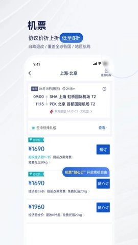 企业差旅管控流程实现直连购票,创新推出极速云抢票功能,抢票速度领先一步,让您更省心;同时提供退改签服务以及私人订制服务,便捷又高效,尊享一站式差旅服务体验;信息安全获得国际认证,还可提供一体化对接解决方案。
