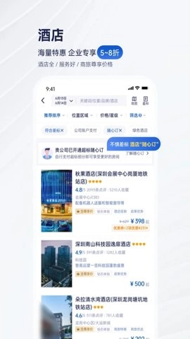 携程商旅企业版具备对接平台预订功能,同时提供全天候7×24小时的管家式服务。通过优化协议酒店资源、严格执行酒店差旅政策、运用酒店比价系统、对优选酒店进行优先展示,以及对不符合差旅标准的情况进行追踪与分析等一系列举措,助力企业有效降低出差酒店的预订成本。