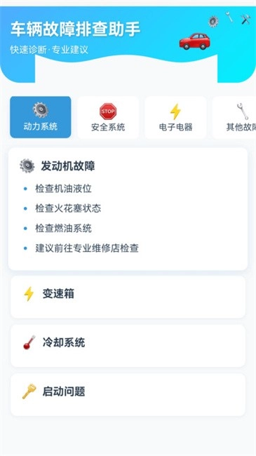 软件能够帮助用户快速诊断各类汽车故障问题,并给出专业的建议。