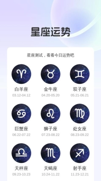 用户能够随时查询自身星座,通过一键操作即可辨识星座,还能随时查看各类星座运势。