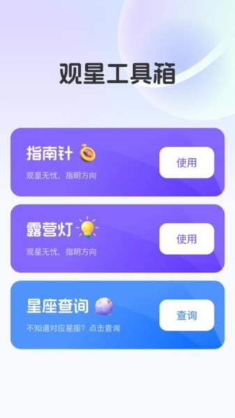 在观星工具箱里能找到所需工具,方便使用各类工具,还能打开露营灯来照明。
