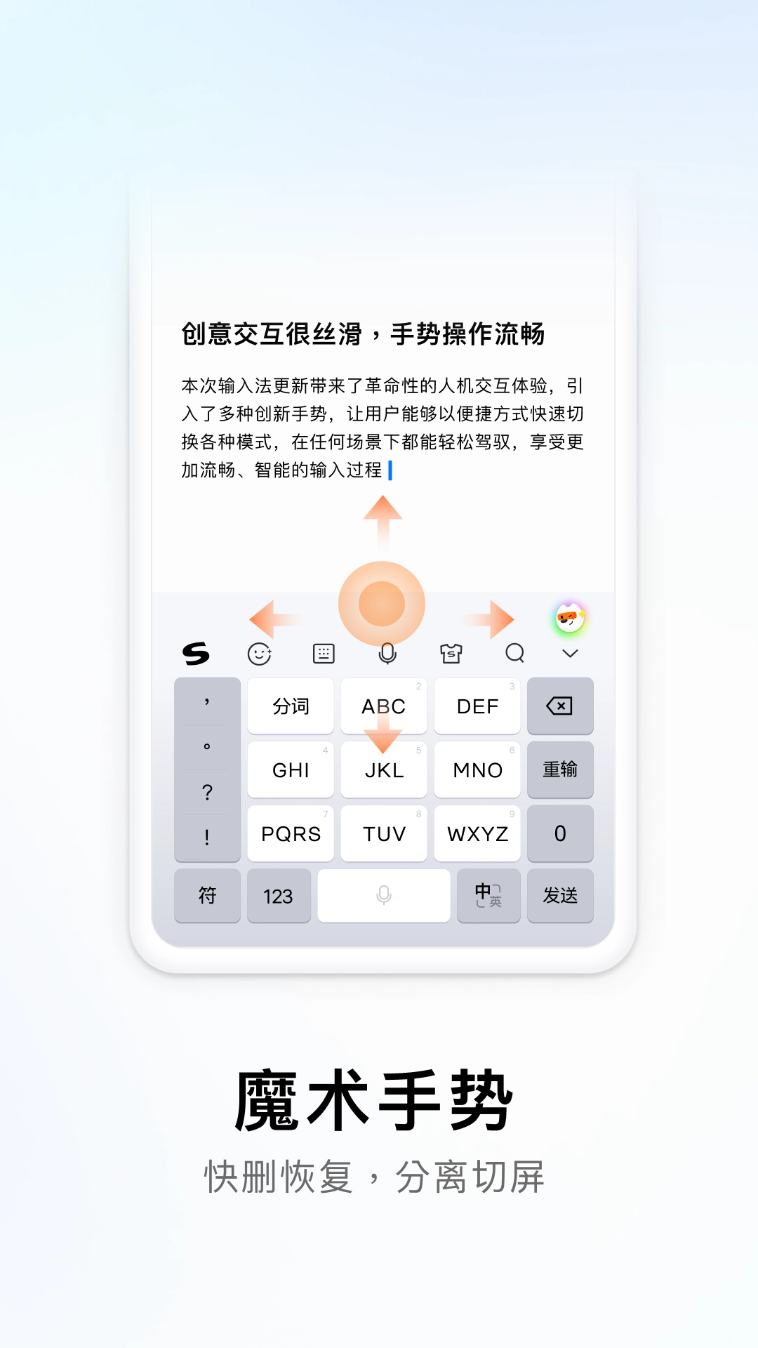 搜狗输入法安卓版新增“剪贴簿”功能:可自动抽取关键词并实现一键传送,帮你省去手工选字的繁琐操作。