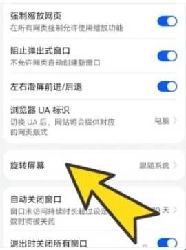 进入浏览设置界面后,找到并点击旋转屏幕。