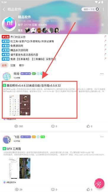 找到软件后,点击对应的帖子进入齐门社区的详情页面。
