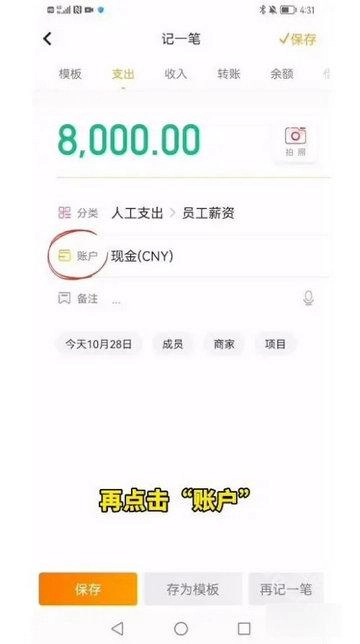 其余的,还能调整时间,添加备注、商家、成员、项目之类的信息。填写好之后,点击“保存”按钮,这样就完成了一笔账目记录。