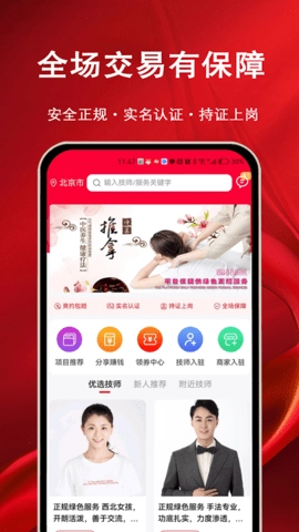 我们提供的上门服务类型包括上门按摩、推拿、精油SPA等。不管您是想缓解身体的疲惫感,还是希望拥有一段放松身心的时光,我们都能为您送上高品质的服务体验。服务全程由平台提供保障,让您的交易没有后顾之忧,要是您对服务不满意,我们承诺全额退款。我们的平台覆盖区域很广,技师资源也十分充足,而且所有技师都经过了实名扫脸认证与资质审核,保证用户能享受到专业的上门按摩、推拿、SPA等健康养生服务。