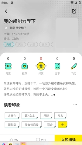 有盐轻小说上线了社交互动功能与完善的创作扶持体系。用户在这里既能浏览海量优质小说内容,也能加入作品讨论、分享阅读心得,和其他读者交流互动,共同营造活跃的社群氛围。同时,平台为原创作者搭建了施展才华的空间,读者可通过评论反馈、打赏支持等形式助力心仪作者,进一步激发优质原创作品的产出。