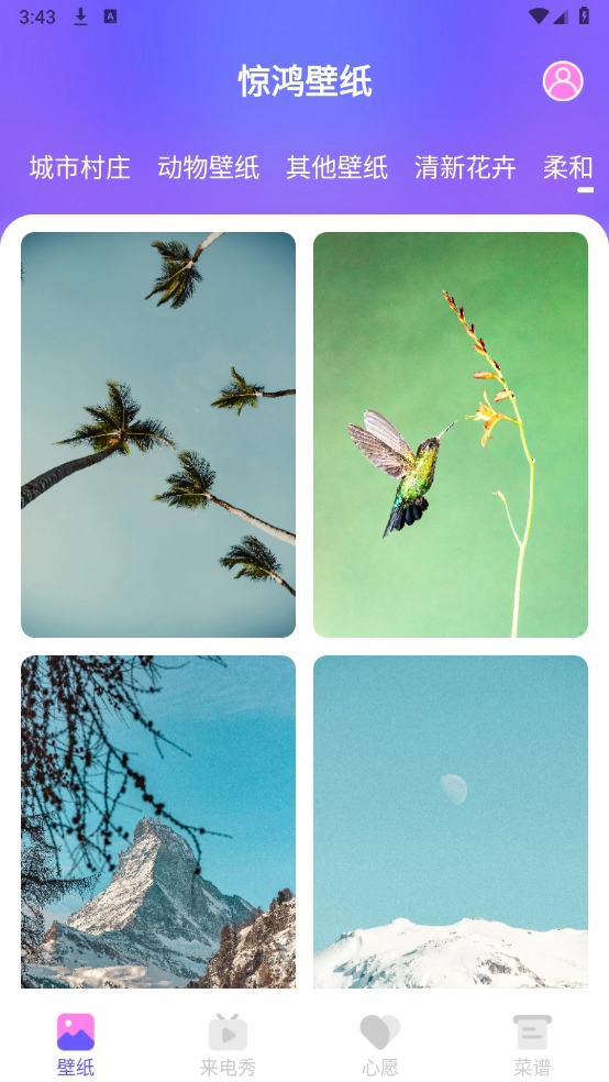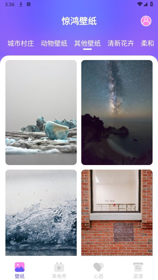 2、在“壁纸”页面,这里汇聚了海量的壁纸资源,涵盖小清新、动物以及建筑等多种类型。