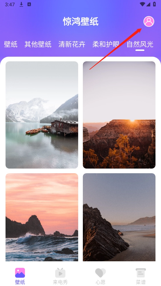 1、进入到惊鸿壁纸,点击右上角的“我的”。
