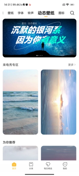 3、精美壁纸每日更新,可根据喜爱的壁纸智能搭配,推荐相关精选内容。