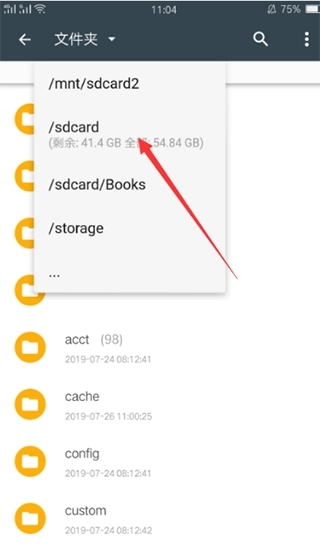 点击添加按钮后跳转到文件挑选页面,在该页面中点击左上方的“文件夹”选项。