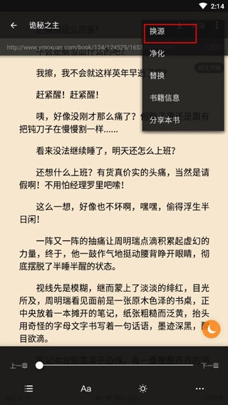 用户可以自行添加外部小说资源,也能为库内已有的小说更换不同的阅读来源。