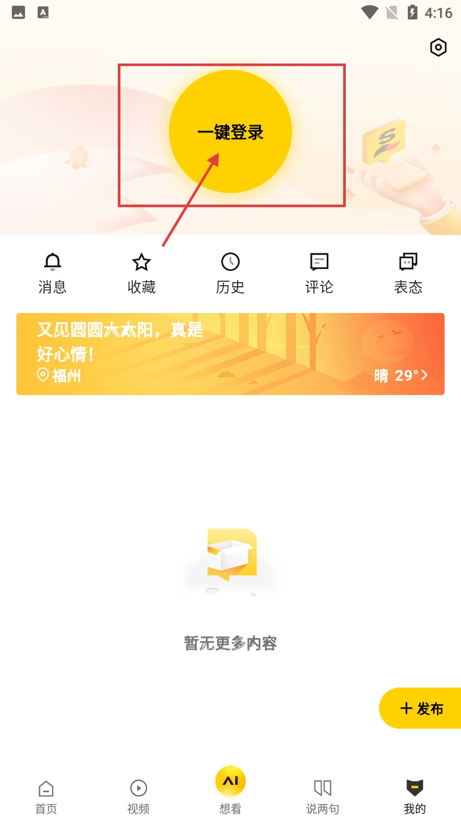 2、在【我的】页面,点击【一键登录】按钮,进入登录流程。