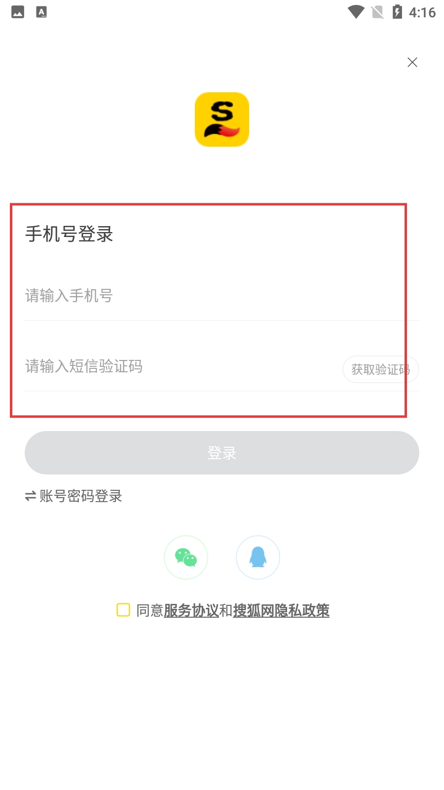 3、选择手机号登录方式,输入手机号和获取的短信验证码,勾选同意协议后点击登录。