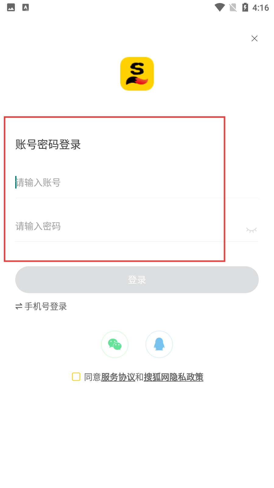 4、也可选择账号密码登录方式,输入账号和密码,勾选同意协议后点击登录,完成账号登录操作。