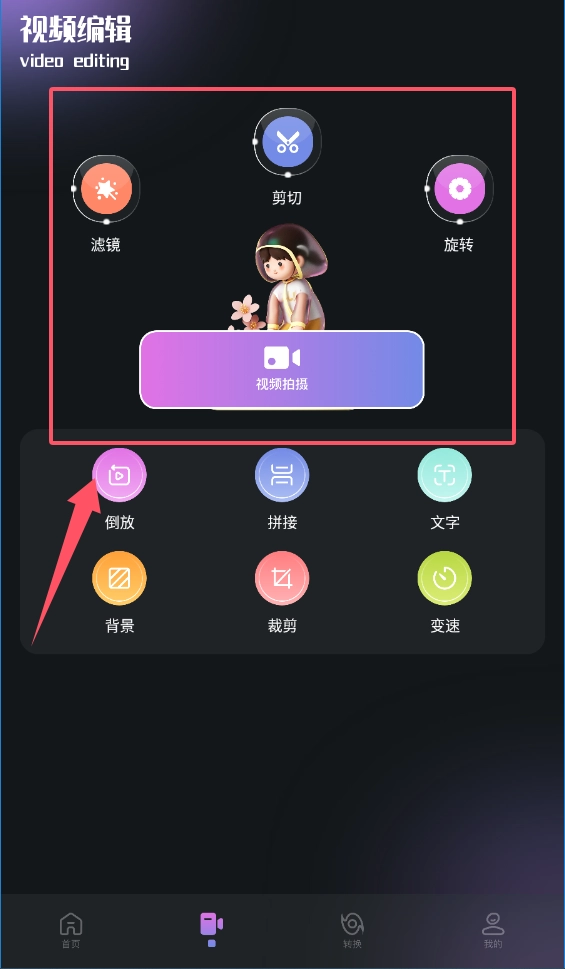 “编辑”界面配备了从“剪切”“旋转”到“滤镜”“背景”的全套工具,还包含“文字”“变速”之类的创意功能,让视频编辑操作既简单又充满乐趣。