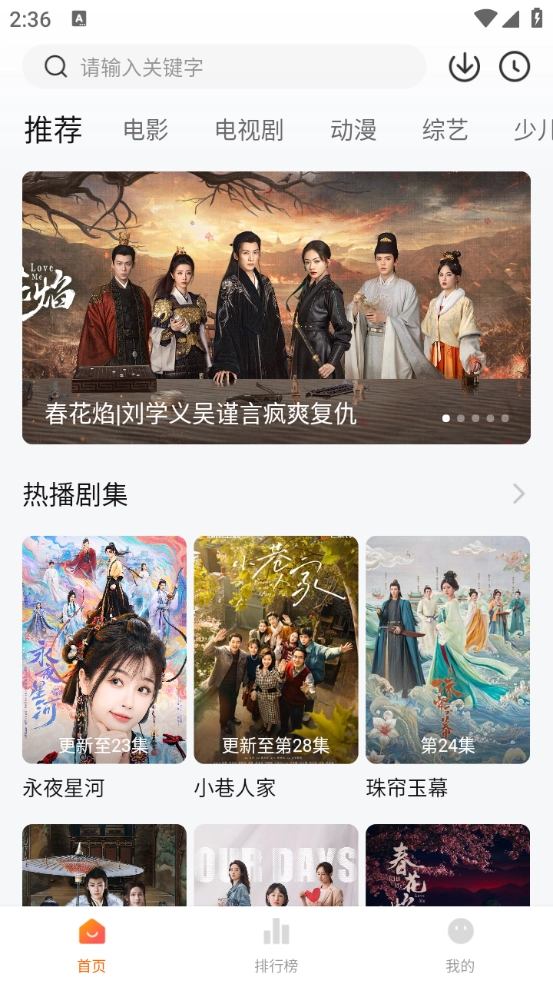 进入首页后,能看到丰富的影视资源,涵盖电视剧、电影、综艺等多种类型。