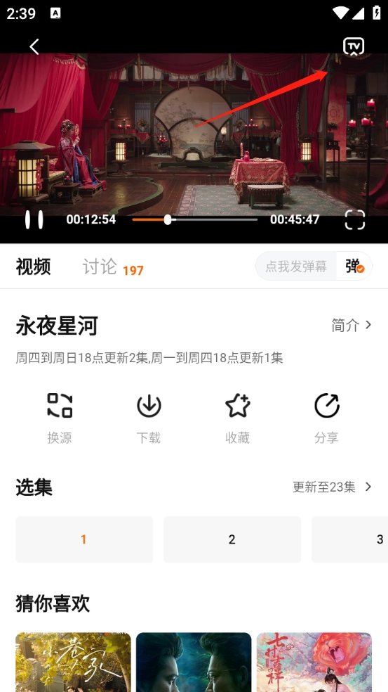 1、任意打开一部影片,点击右上角的“TV”.