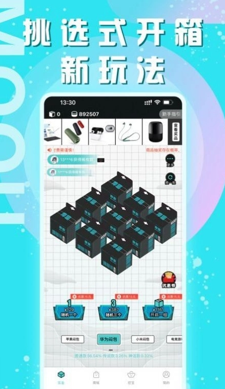 涵盖盲盒种类齐全物品多样,品牌箱包、大牌手机、化妆美护、日用百货、潮玩手办都可以随意选购