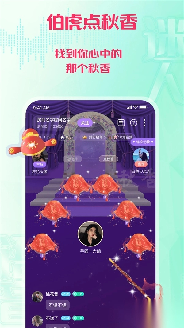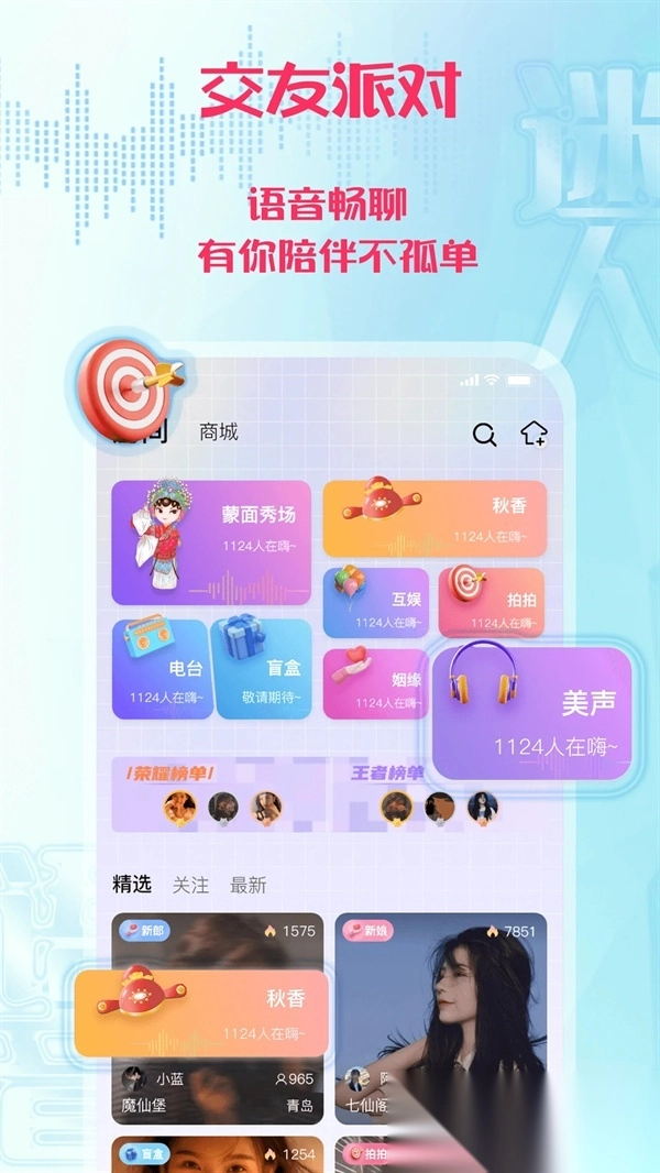 迷人语音是一款集附近交友、语音社交、才艺展示、约会恋爱与互动游戏于一体的综合应用。
