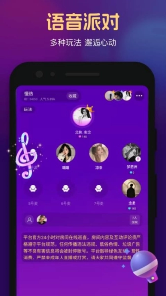 派对K歌,音符飞舞,感受24小时不间断的线上演唱会,让美妙的歌声洗涤心灵。