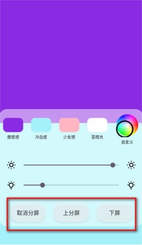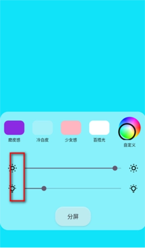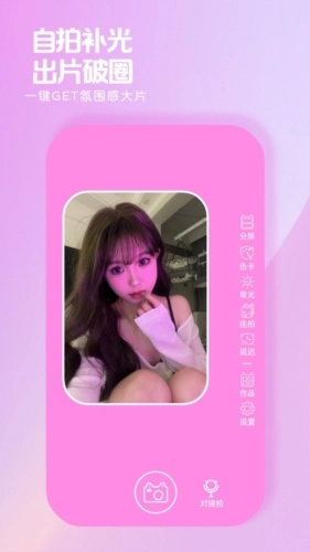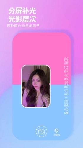 4.全屏分屏自由打光: -应用提供全屏与分屏两种打光模式,借助分屏模式下的色彩混合,增强拍照时的光影层次感,让照片呈现更生动的效果。
