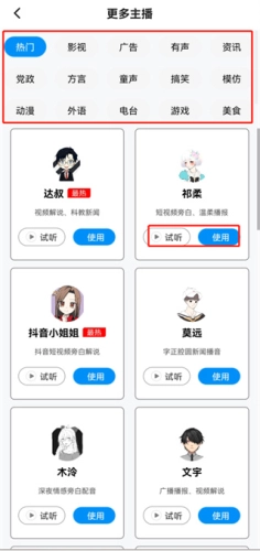2、素材丰富:上百位AI智能发音人,包含方言、外语旁白等