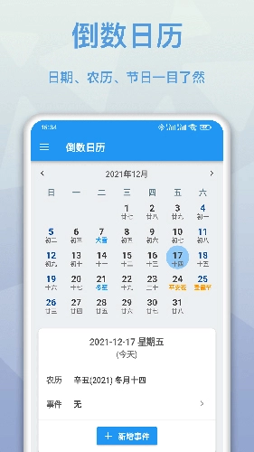 1、具备公历与农历的倒数日期计算及提醒功能,重要事件可醒目置顶,还支持按时间远近进行排序。