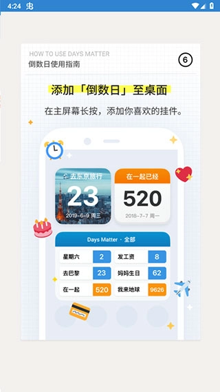 6、在手机主屏幕长按,可以将倒数日添加到桌面。