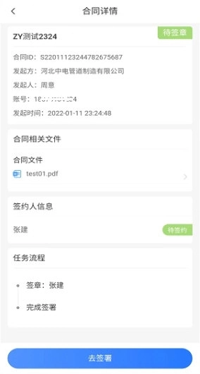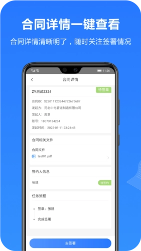 3、支持实时查看待处理、待签收以及待签章状态的合同文件。