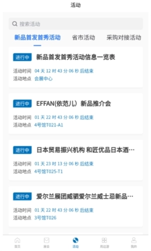 1、导航页面:主要内容是推送重要新闻和公告,还有分别介绍了相关的场馆,以及展商以及展馆分布;