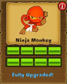 忍者猴简直超赞!一开始就能轻松闯过不少关卡呢。它攻击速度比较快,在游戏初期就能够对迷彩气球发起攻击。(悄悄说一句:忍者猴的原型源自《特种部队》里的黑白忍者“蛇眼”和“白幽灵”哦。)