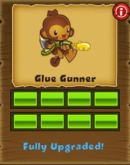 (延长持续时间)→(每次可粘住6个气球)→(攻击速度翻倍)→(新增技能,使用胶水攻击全屏气球)
