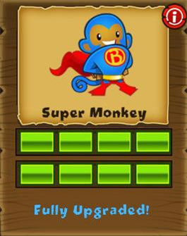 飞镖猴,就是游戏封面上那只正啃着香蕉的小猴子,它的射程处于中等水平,射速也较为普通,同时它还是众多“射气球”游戏里的主角。而它所崇拜的偶像,是备受瞩目的“超猴”。
