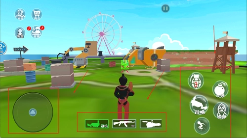 2、左边是移动摇杆,右边是开火及换弹,之间则是切换武器。