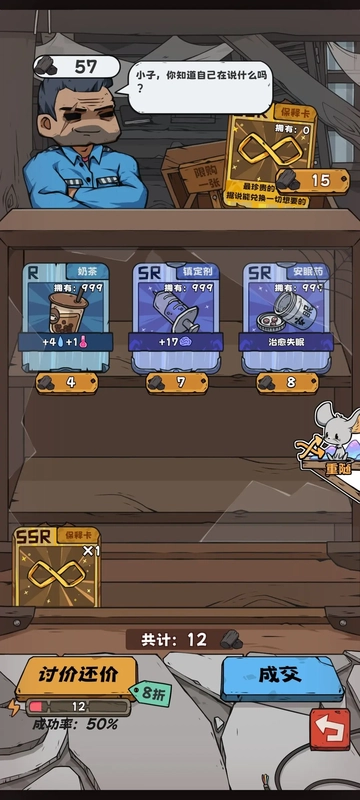 要是能换,先打开一组四个,瞧瞧有没有2张SR ,要是没有,就去选对面那组(碰到小偷就进行交易,只有极小概率会亏本)