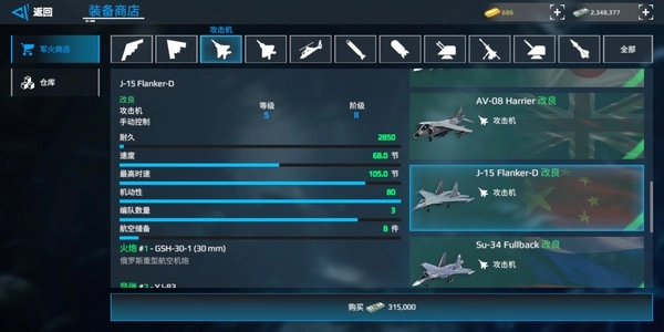 攻击机:j15/su34