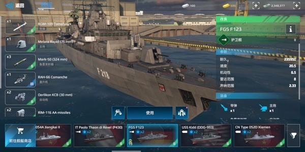 F123 是一艘主打鱼雷输出的船只。自从之前鱼雷命中机制调整后,它的鱼雷精准度极高。这也使得 F123 变得十分强势,装上三发 HUWS 直接冲到敌方跟前,就能让对方血条瞬间消失。要是手头宽裕,不妨买一艘来体验体验。