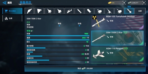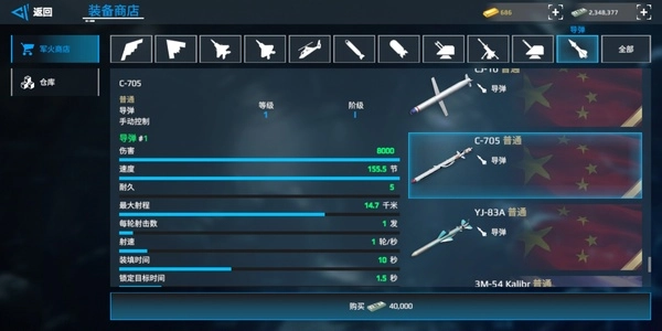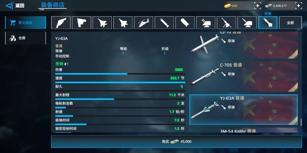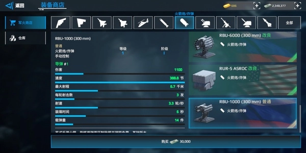 RBS:双发导弹,秒伤全游靠前,虽飞行速度慢但是可以密集突防。