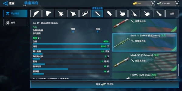 鱼雷:鱼七/黑鲨(综合)/旗鱼(高伤老六)/89
