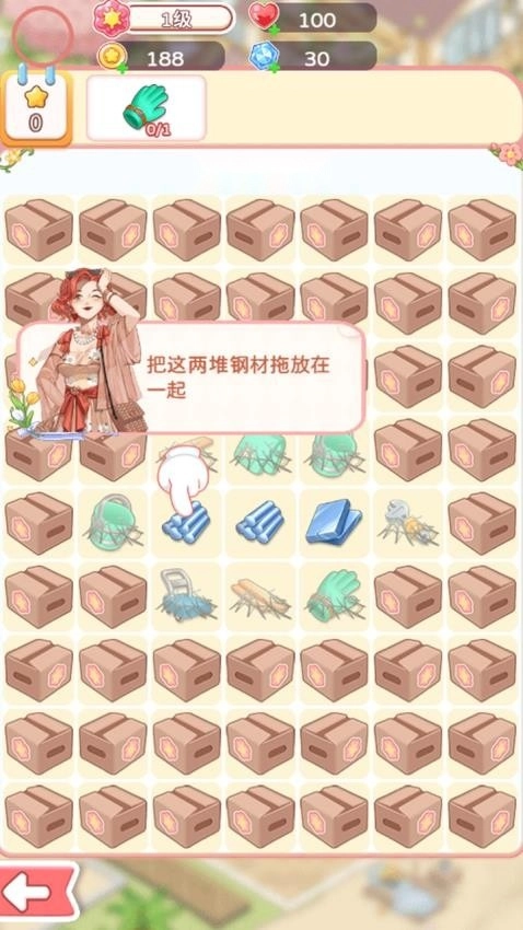 消除的时候你需将周围的纸箱触发获得相应物品,同时可开始再次合并。