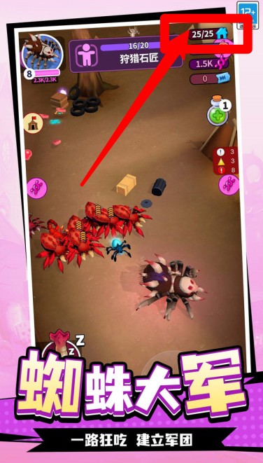 2. 留意上限及产量:右上角单位栏(25/25)会显示你当下的军团数量,一旦超出上限便无法孵化,需及时清理空间以继续繁殖。