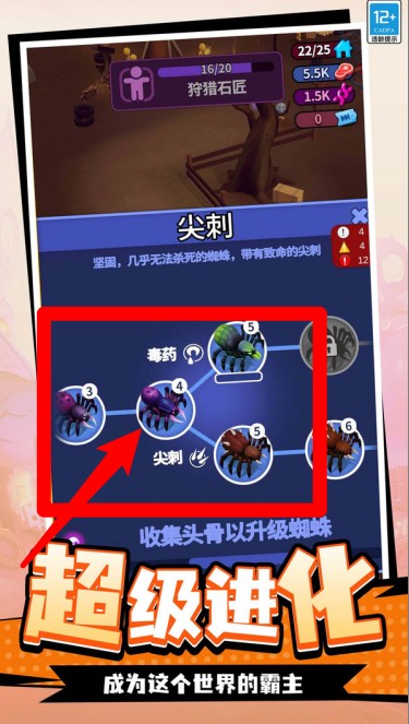 4. 蜘蛛女王系统:只要成功唤醒蜘蛛女王,便能解锁众多技能以及战力上的优势,为你的蜘蛛军团赋予势不可挡的成长助力。