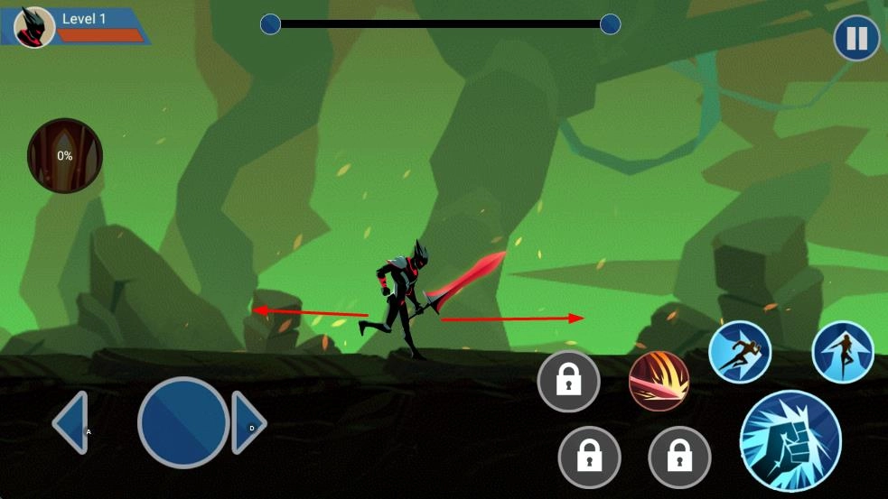 1. 踏入Level1后,控制角色进行左右移动,于奇幻风格的场景里展开探索,开启一场格斗冒险之旅。